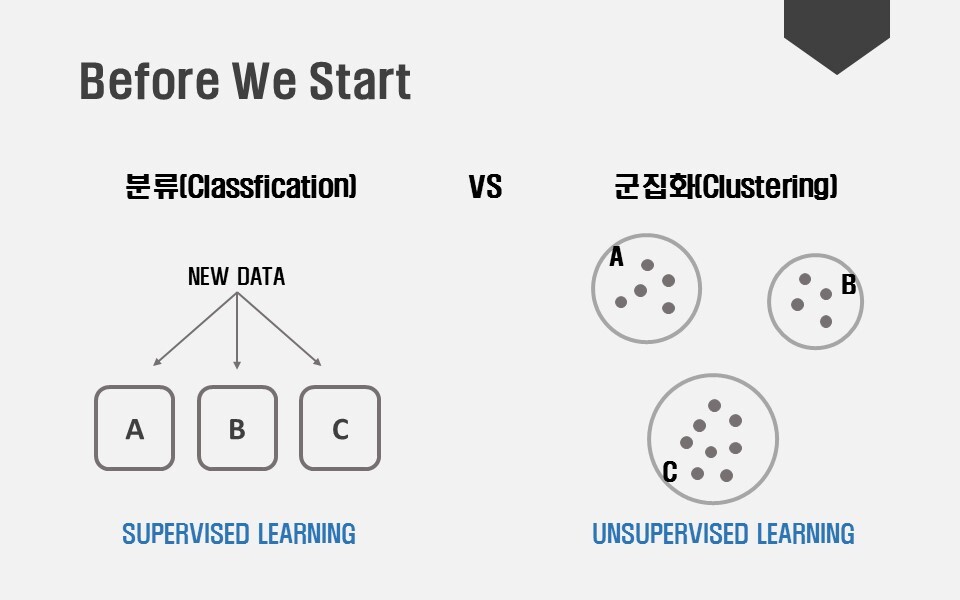 분류와 군집의 차이는 사진 하나로 간단하게 설명할 수 있다.